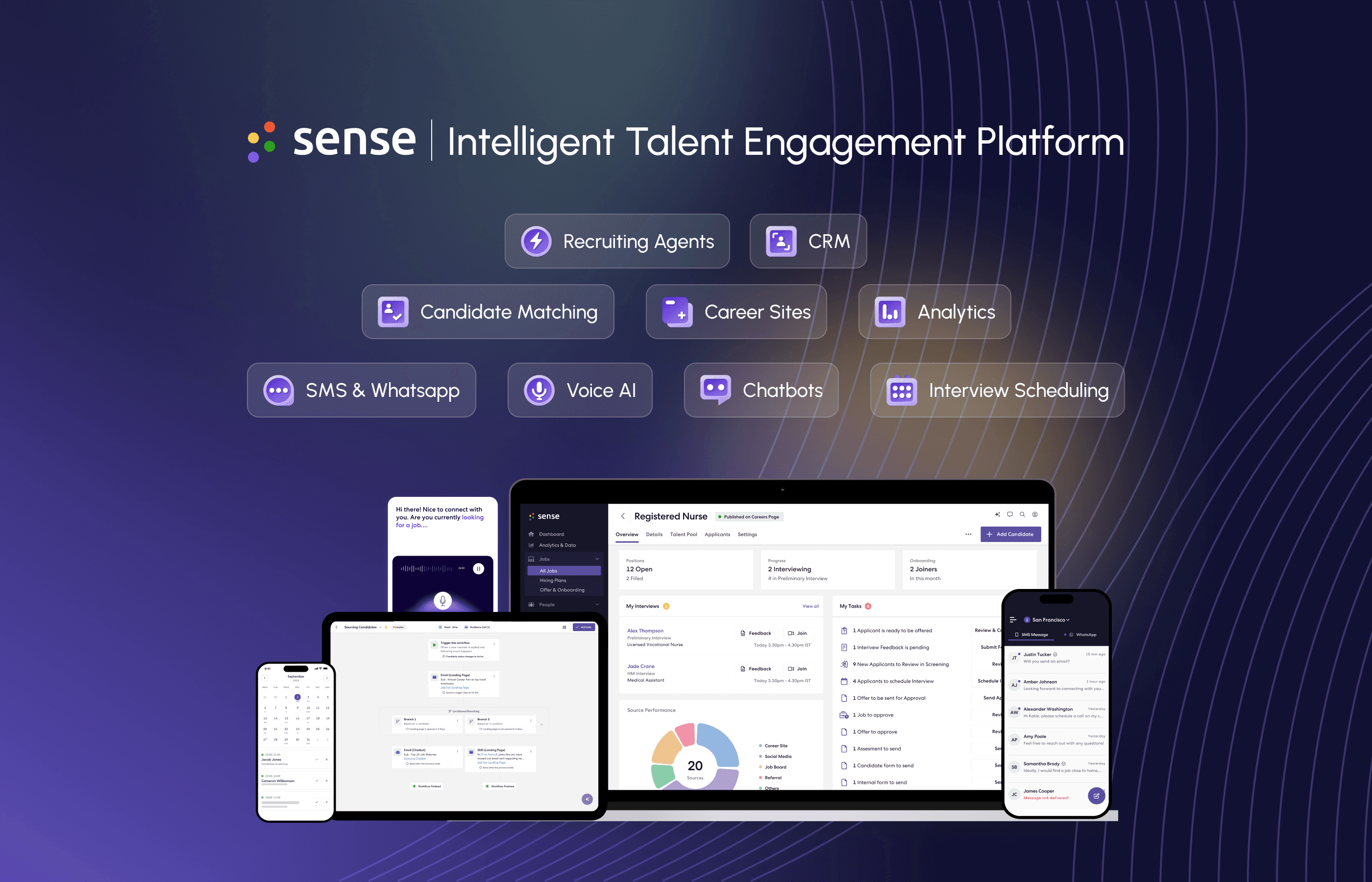 When I joined Sense, the experience was fragmented: siloed products, inconsistent design practices, and a lack of cohesion across the platform. I helped define a systems-driven design vision and established an experience north star to guide the unification of the ecosystem into an AI-first, enterprise-ready hiring platform. By scaling a diverse team across product, brand, and growth design, we operationalized this vision—driving coherence, usability, and adoption through a connected, end-to-end experience.