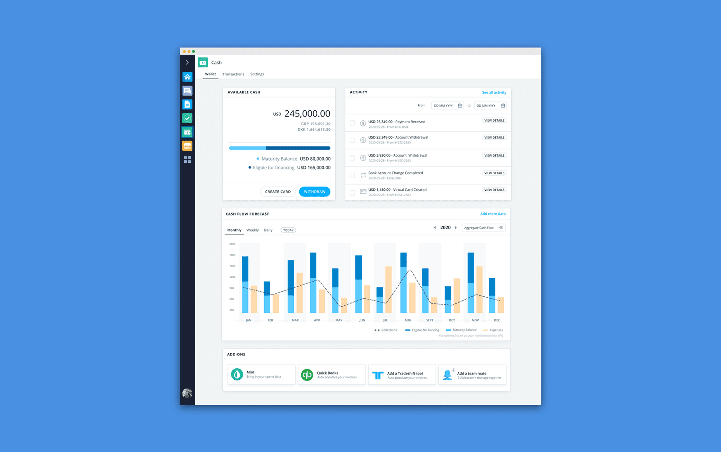 When I joined Tradeshift, design was still finding its voice inside a rapidly expanding fintech startup. What began as a few designers shaping isolated products grew into a global product design organization spanning three studios and 20+ practitioners, helping drive one of the boldest transformations in B2B commerce — from a single product to a connected financial platform used by millions. Over the next few years, I partnered closely with product and commercial leaders to bring new ideas to market — from B2B marketplaces to working-capital solutions — while embedding design thinking, rapid prototyping, and customer co-creation deep into how we built and launched products. Design became both the spark for new concepts and the connective tissue across teams.