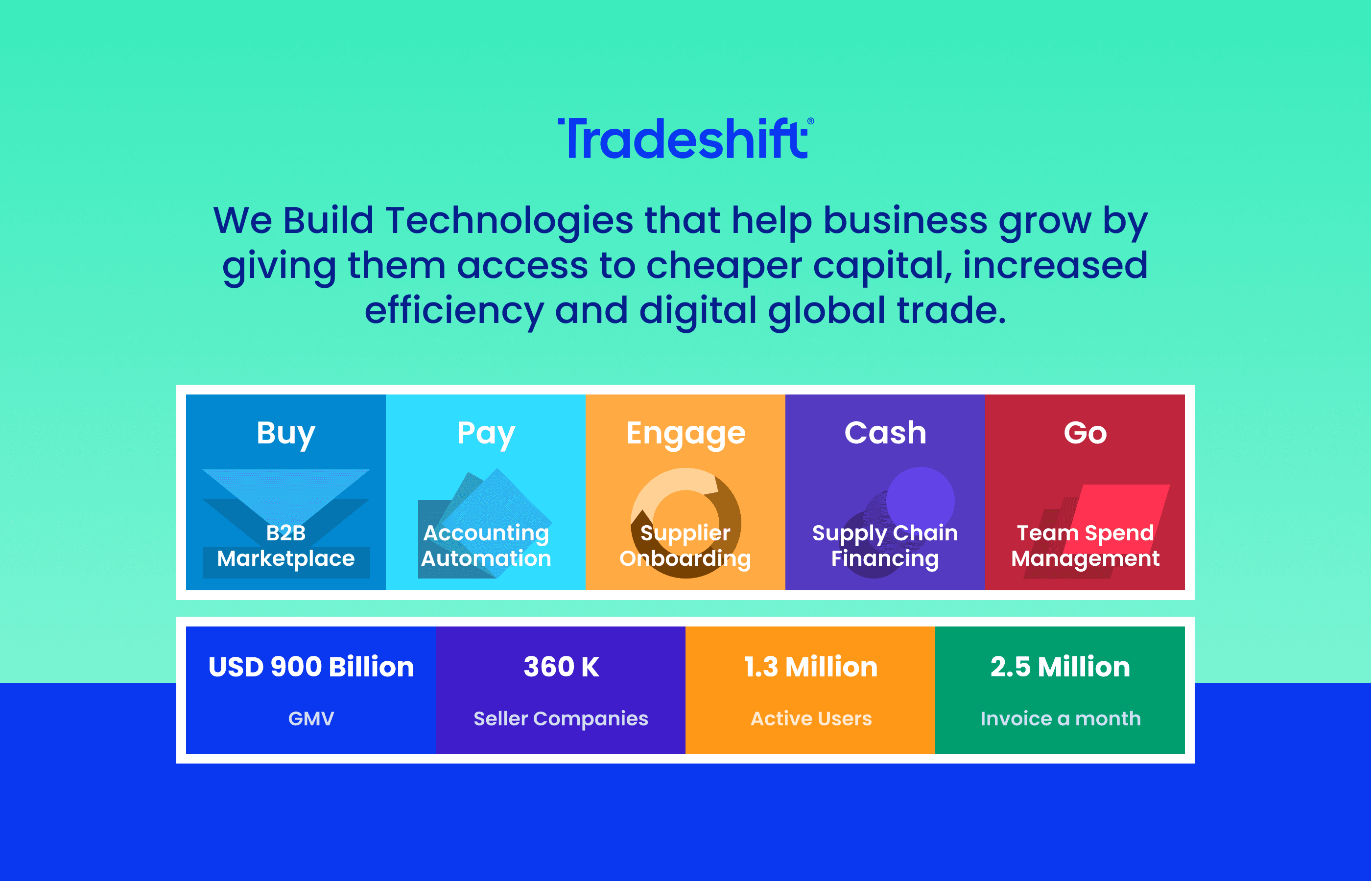 Scaled from $50M → $1B+ annual volume within two years; fastest-growing product in Tradeshift’s portfolio