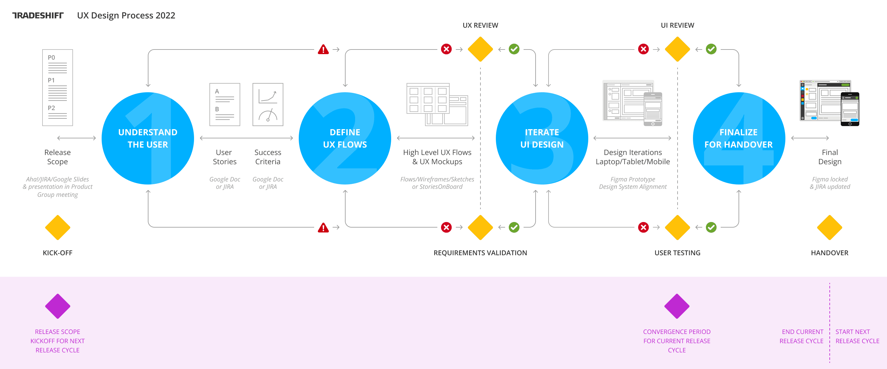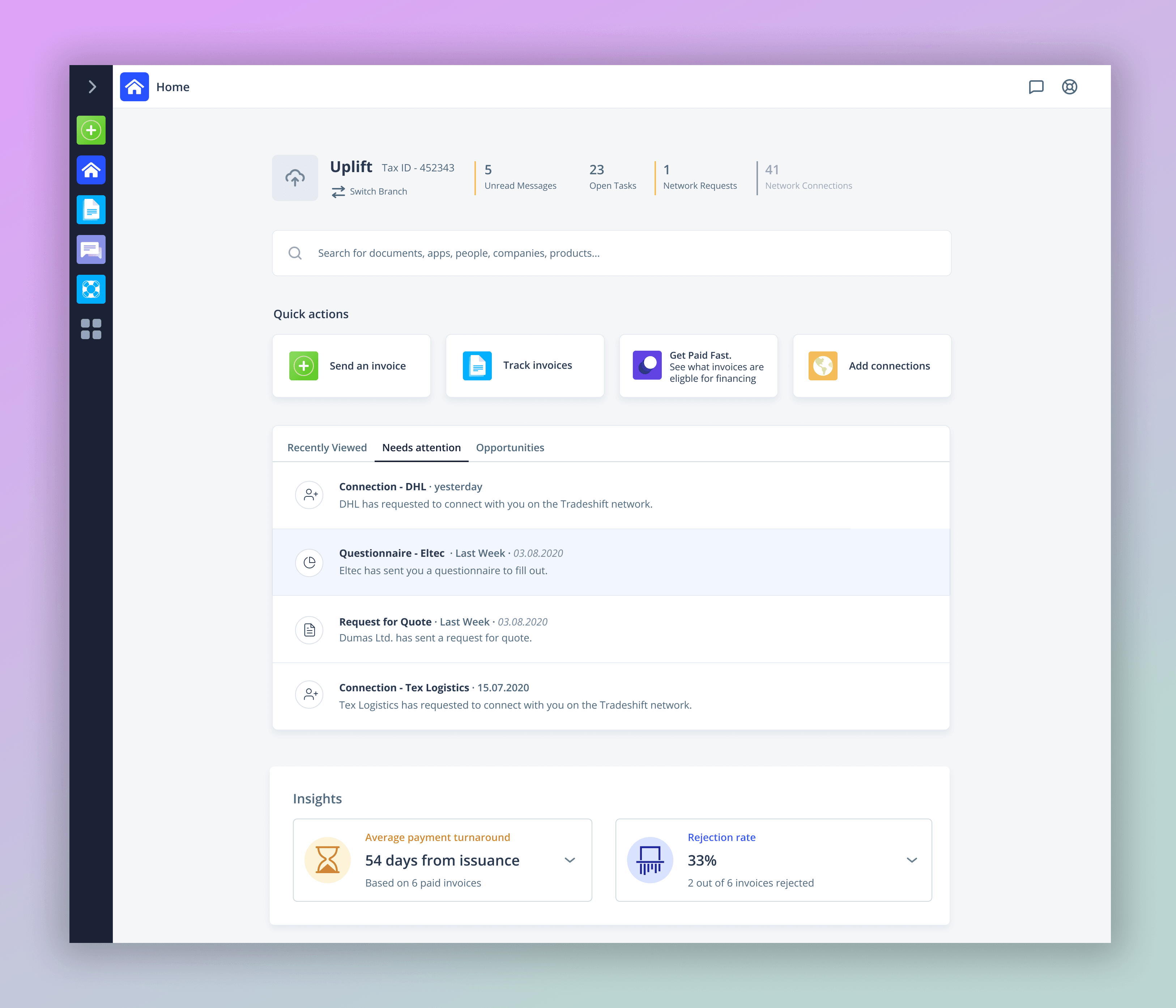 As Tradeshift matured from product-market fit to platform scale, my focus shifted to institutionalizing design — creating the foundations that would let creativity scale sustainably. We built a unified design system, formalized UX research and design ops, and developed new standards for design quality that directly tied to business performance and product differentiation.