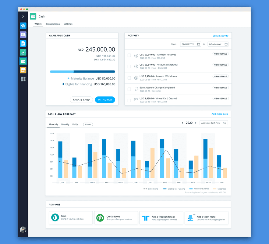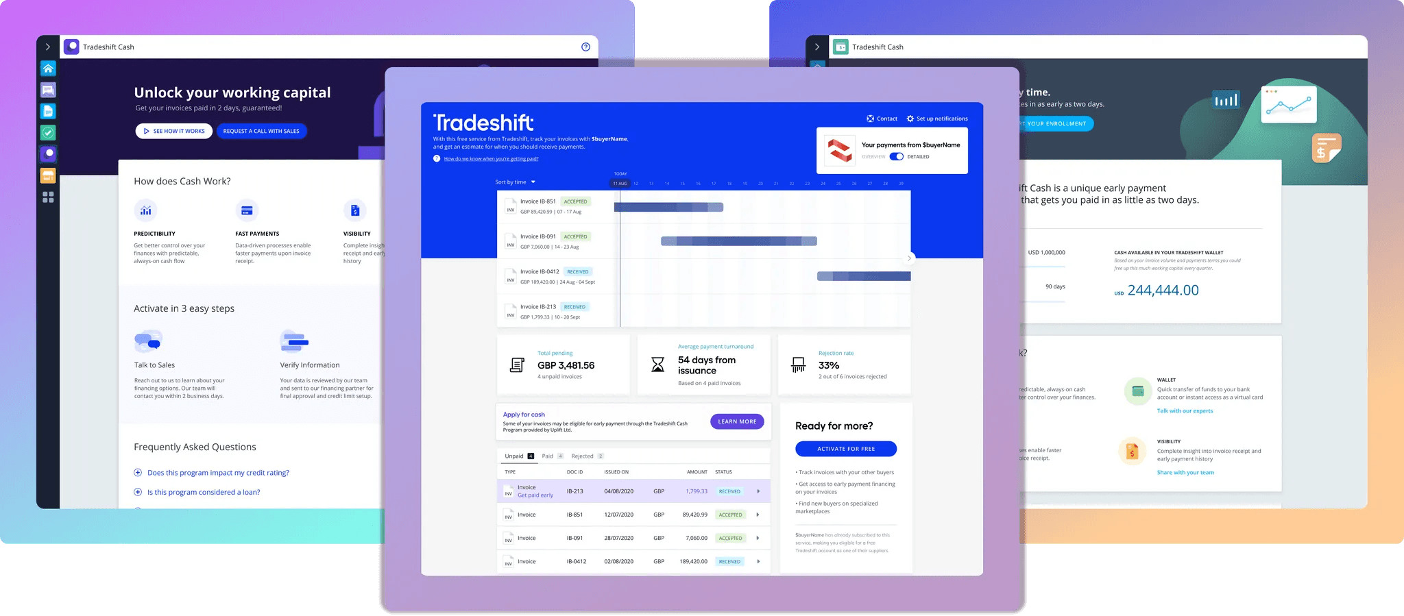 Tradeshift Cash brings inclusive, data-driven financing to small and mid-sized suppliers traditionally excluded from enterprise-grade supply chain finance programs. I led the product design from the ground up and later expanded into product management, helping launch Cash with capital partners like HSBC and Santander. We focused on unlocking liquidity through platform data - offering sellers timely access to funds based on historical invoices, not just credit scores.